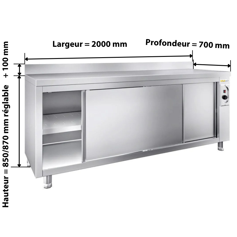 - Dimensions extérieures : 2000 x 700 x 850/870 mm