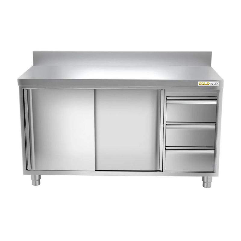 Meuble bas inox 1800 x 600 mm adossée avec 3 tiroirs droit / GOLDINOX
