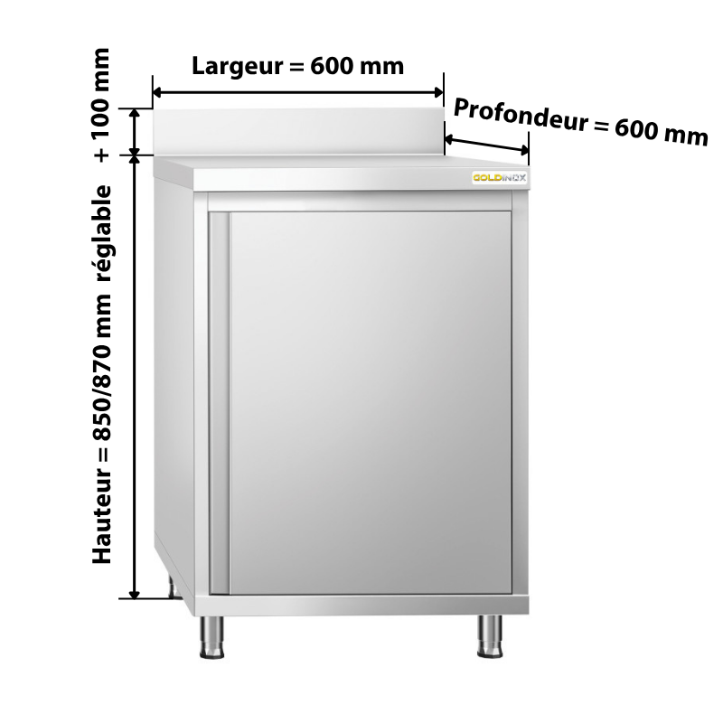 - Dimensions extérieures : 600 x 600 x 850/870 mm (L x P x H)