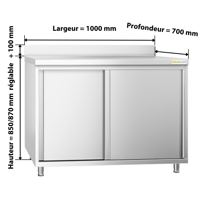 Meuble bas inox 1000x700 mm adossé IDEAL - GOLDINOX