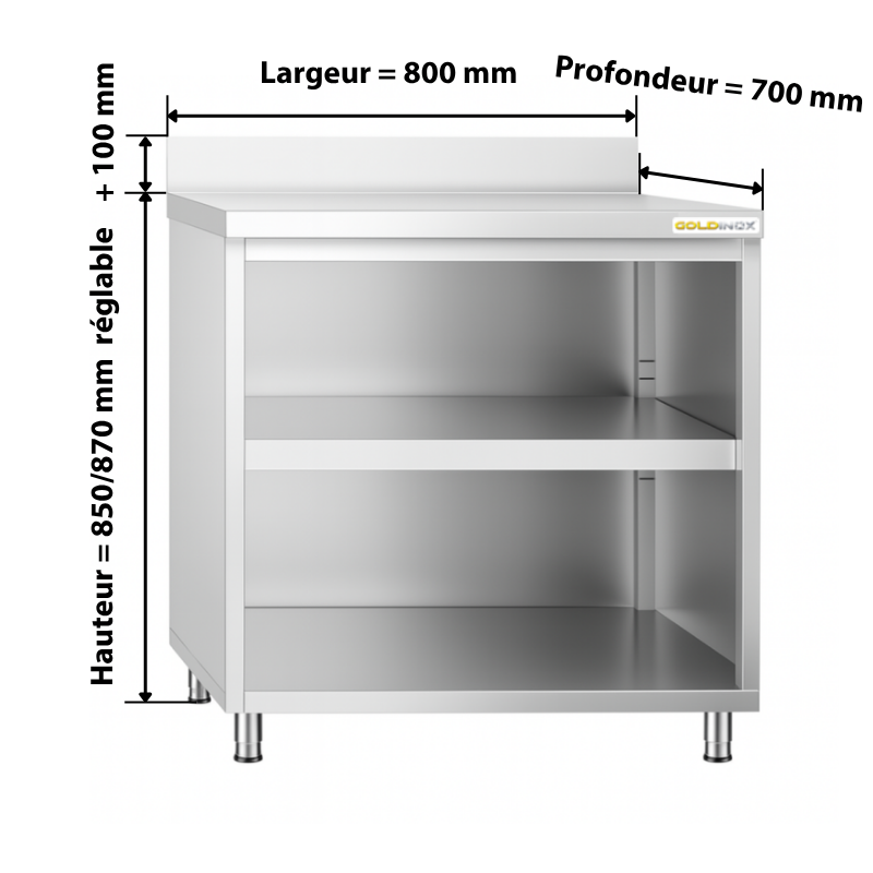 Meuble bas inox ouvert 800x700 mm adossée IDEAL - GOLDINOX
