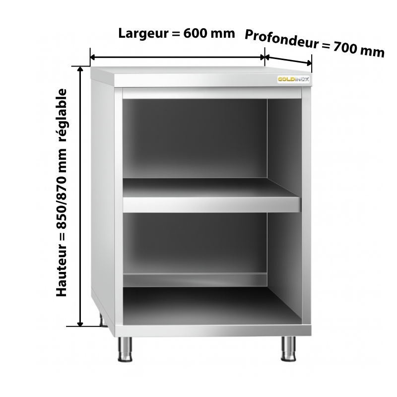 Meuble bas inox ouvert 600x700 mm IDEAL - GOLDINOX