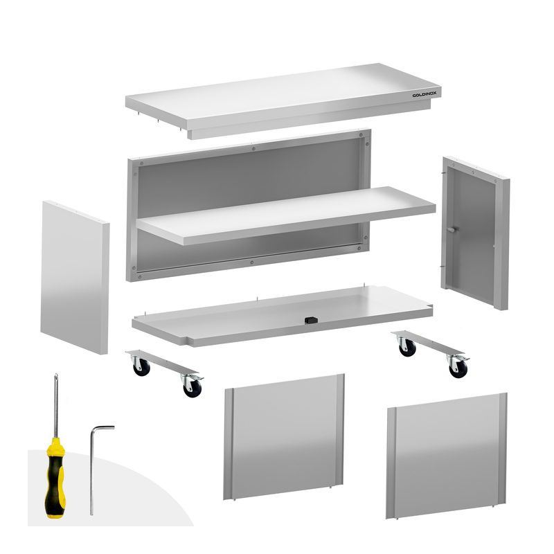 Meuble bas inox ouvert 1000x800 mm sur roulettes PREMIUM - GOLDINOX