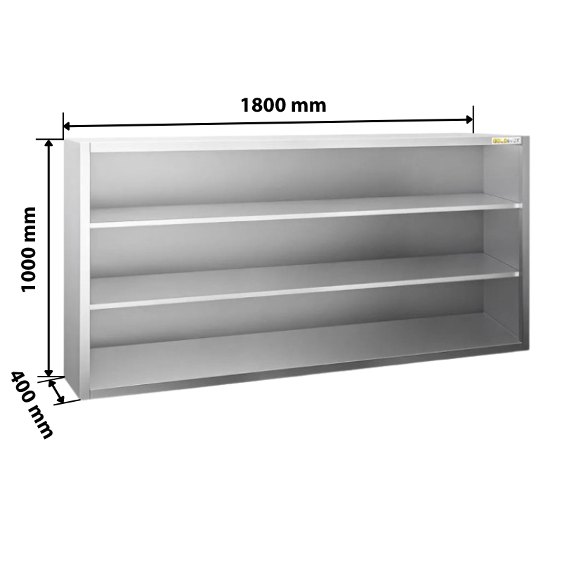 Placard mural inox 1800x400 mm - Hauteur 1000 mm ouvert PREMIUM - GOLDINOX