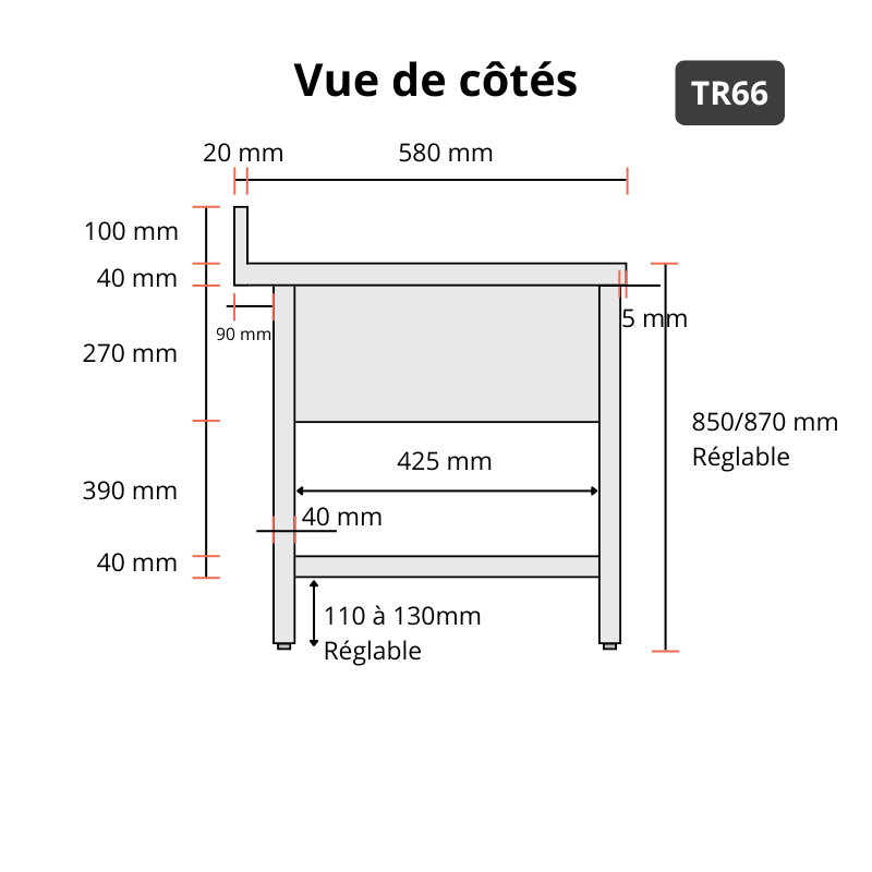 Pour s’adapter à la morphologie et aux préférences de chaque utilisateur, les pieds réglables en hauteur permettent d’ajuster la plonge entre 850 mm et 870 mm, assurant ainsi un confort de travail optimal et réduisant la fatigue lors d’un usage prolongé.