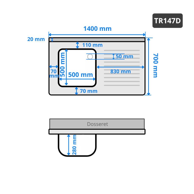Plonge inox 1 bac - 1400 x 700 mm égouttoir droite / GOLDINOX