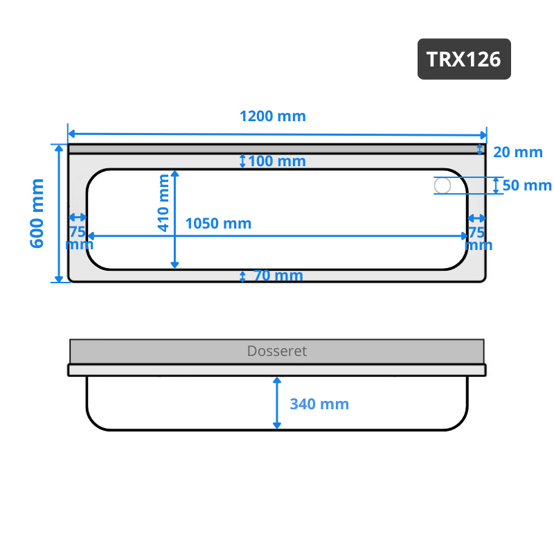 • Dimensions de la cuve : 1050 x 410 x 340 mm