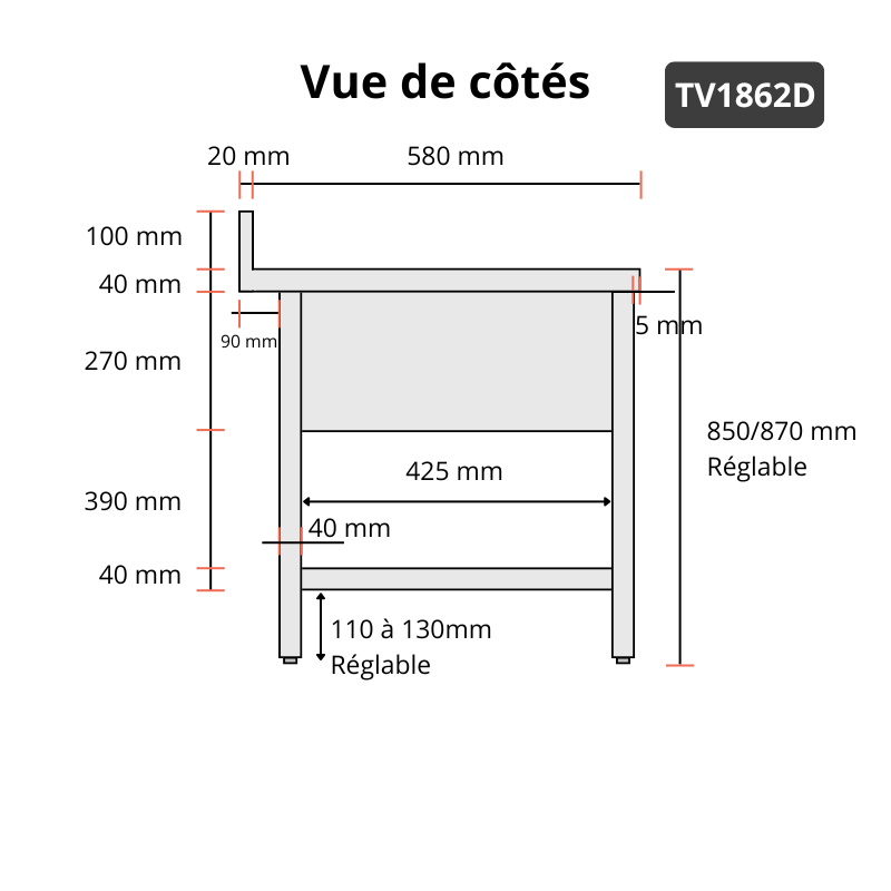 Avec ses angles arrondis et sa hauteur réglable (850-870mm), cette plonge a été conçue pour offrir un confort optimal et réduire la fatigue lors des longues sessions de travail. L'étagère basse fournit un espace de rangement supplémentaire pour vos ustensiles et produits.