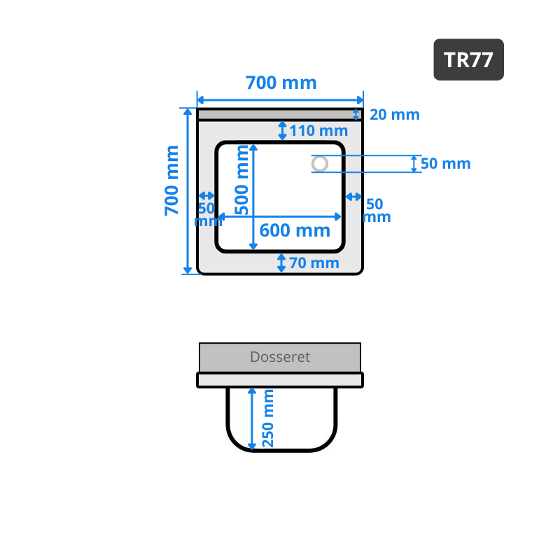 - Dimensions extérieures : 700 x 700 x 850/870 mm