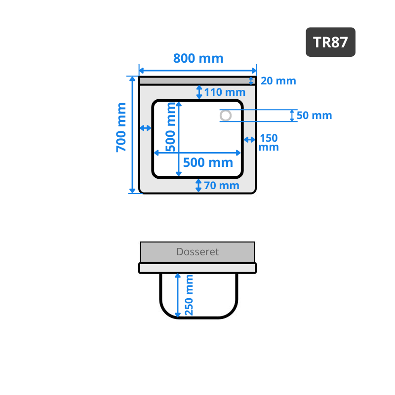 - Dimensions extérieures : 800 x 700 x 850/870 mm