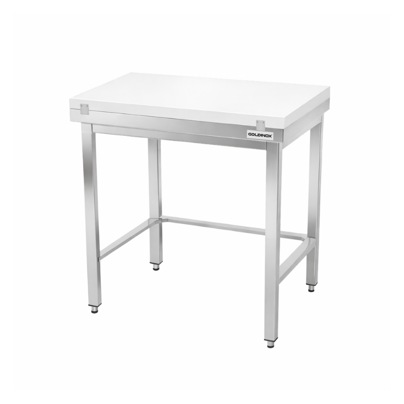 Table de travail en inox 800x500 mm avec plaque de découpe blanche et renfort PREMIUM - GOLDINOX