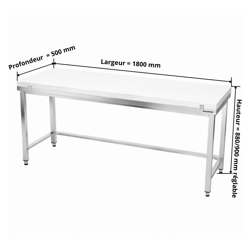 Table de travail en inox 1800x500 mm avec plaque de découpe blanche et renfort PREMIUM - GOLDINOX