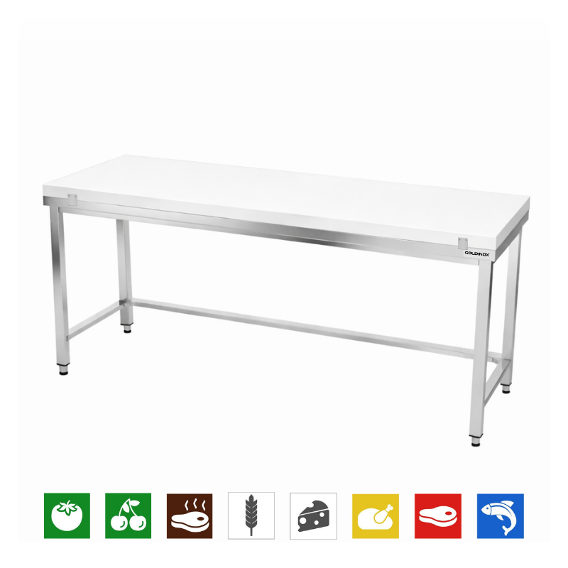Table de travail en inox 1800x600 mm avec plaque de découpe blanche et renfort PREMIUM - GOLDINOX