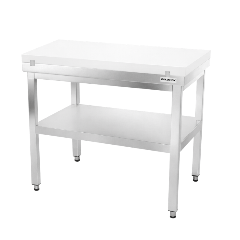 Table de travail en inox 1000x700 mm avec plaque de découpe blanche et renfort PREMIUM - GOLDINOX