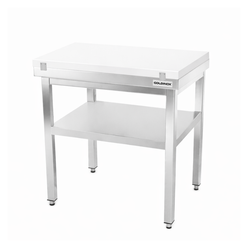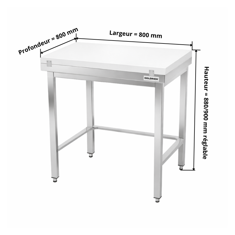 Table de travail en inox 800x800 mm avec plaque de découpe blanche et renfort PREMIUM - GOLDINOX