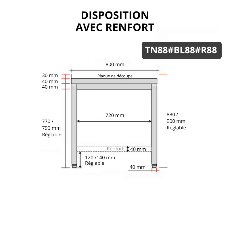 - 1 renfort inox et 1 étagère basse inox fournie