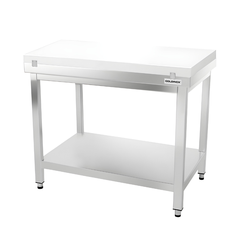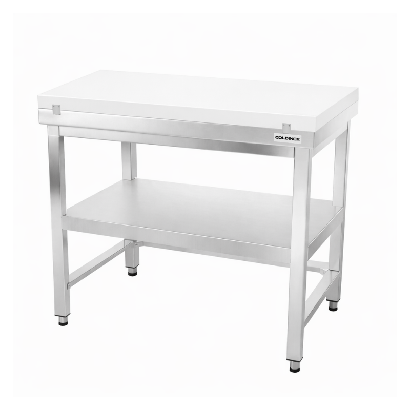Table de travail en inox 1000x800 mm avec plaque de découpe blanche et renfort PREMIUM - GOLDINOX