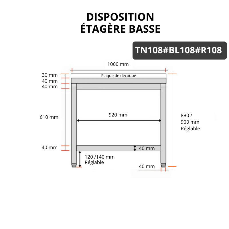 - 1 renfort inox et 1 étagère basse inox fournie