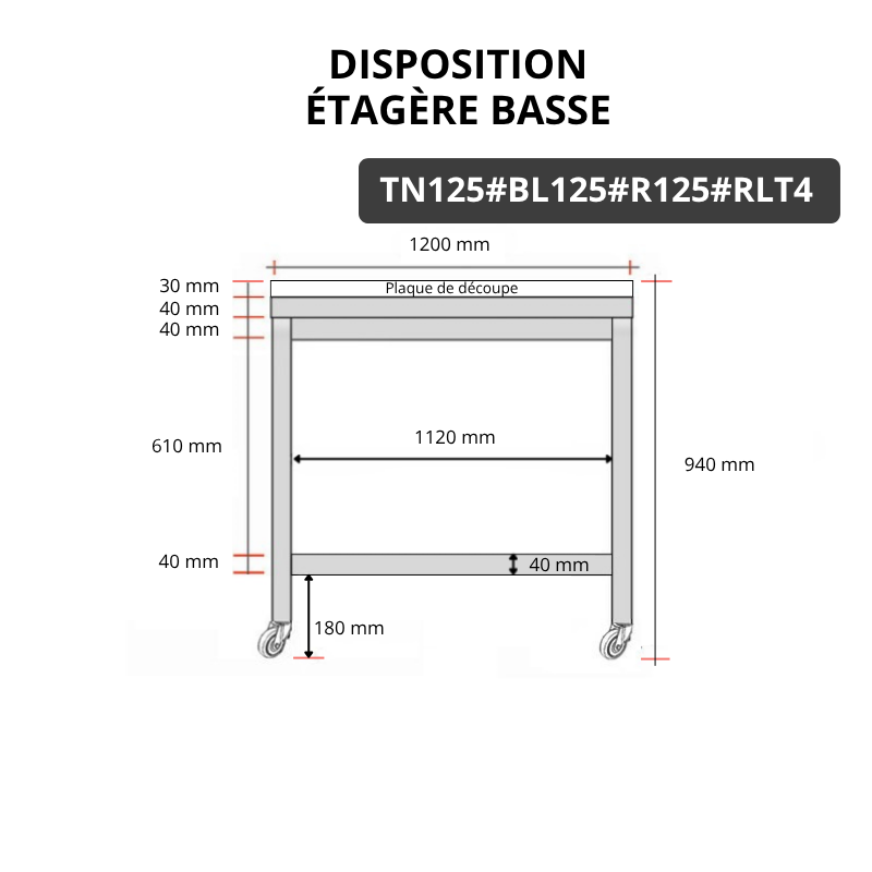 Table de travail en inox 1200x500 mm avec plaque de découpe blanche et renfort sur roulettes PREMIUM - GOLDINOX