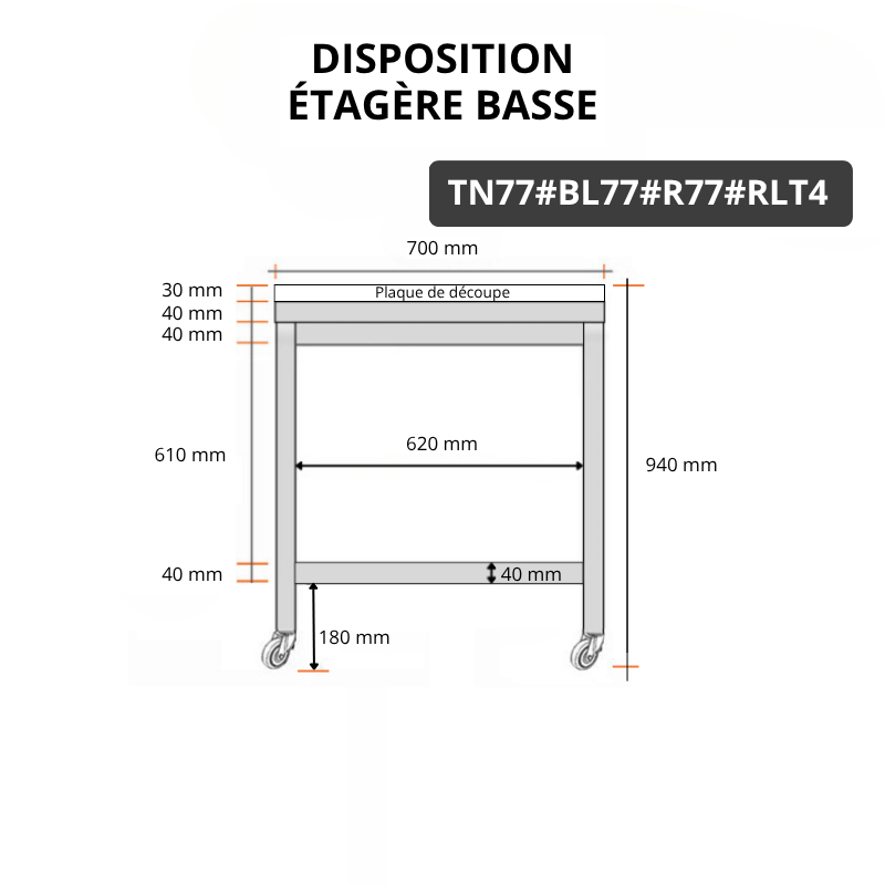 - 1 renfort inox et 1 étagère basse inox fournie