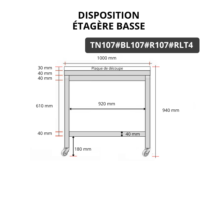 - 1 renfort inox et 1 étagère basse inox fournie