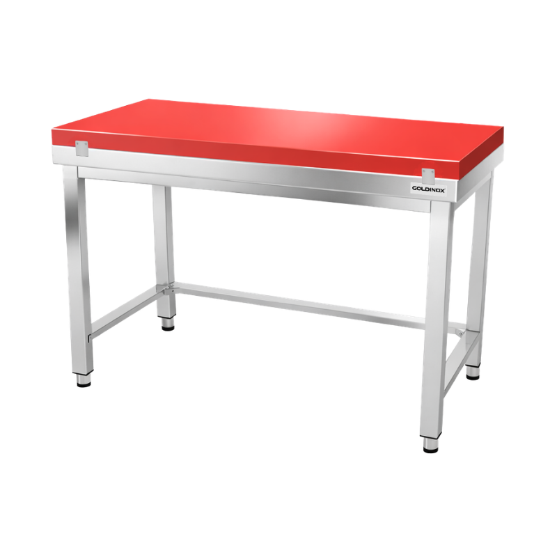 Table de travail en inox 1600x600 mm avec plaque de découpe rouge et renfort PREMIUM - GOLDINOX