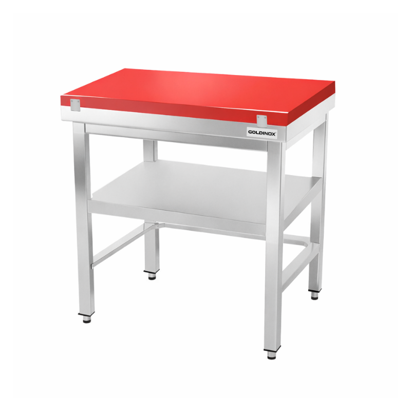 Table de travail en inox 700x700 mm avec plaque de découpe rouge et renfort PREMIUM - GOLDINOX