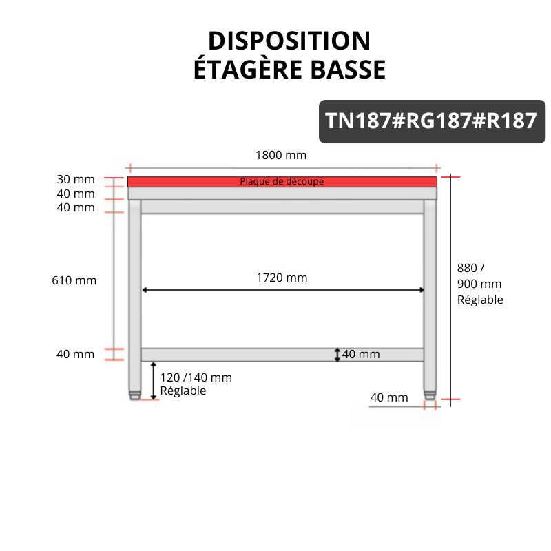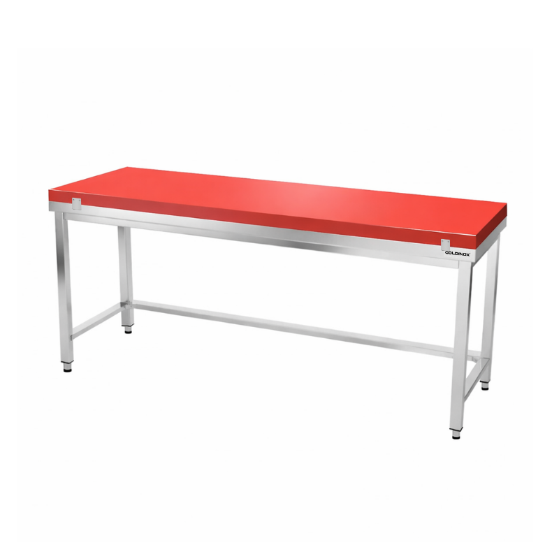 Table de travail en inox 1800x700 mm avec plaque de découpe rouge et renfort PREMIUM - GOLDINOX