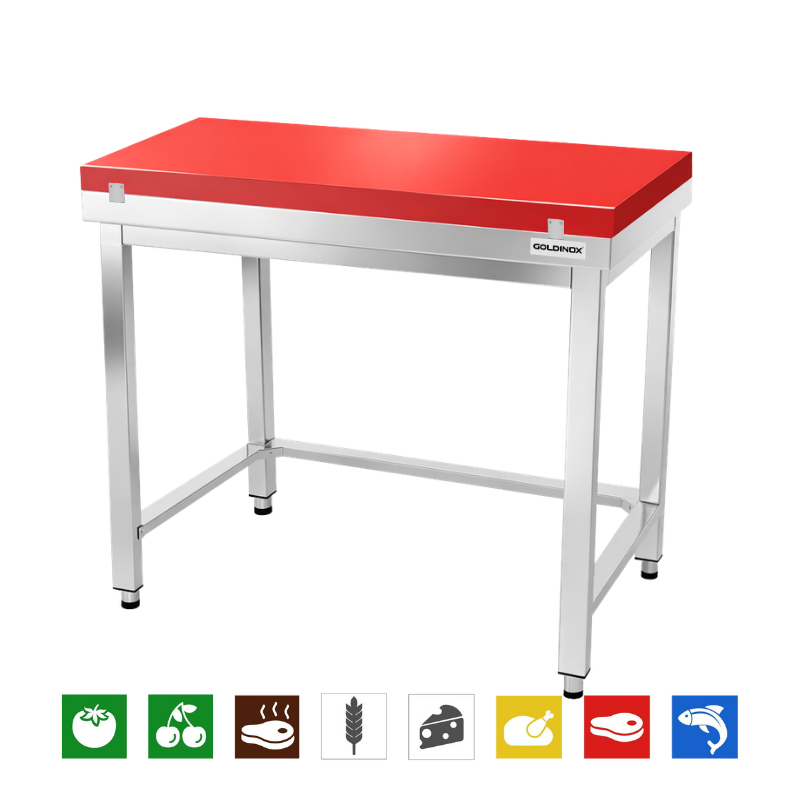 Table de travail en inox 1000x800 mm avec plaque de découpe rouge et renfort PREMIUM - GOLDINOX