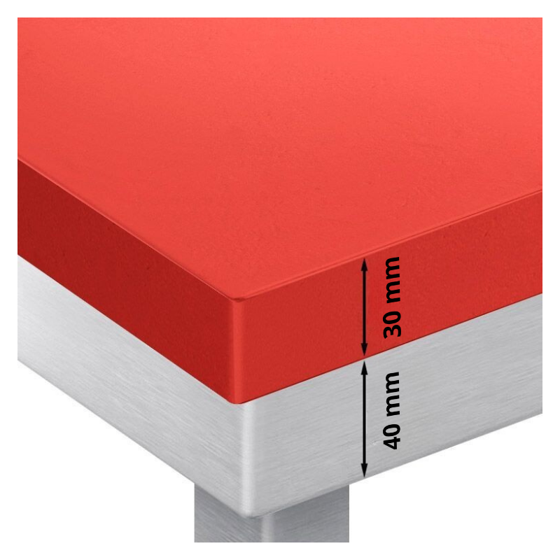 - Table de travail professionnelle en acier inoxydable AISI 304 haut de gamme et plaque de découpe en polyéthylène rouge alimentaire