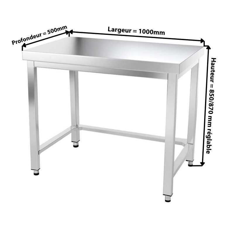 Table inox 1000 x 500 mm avec renfort / GOLDINOX