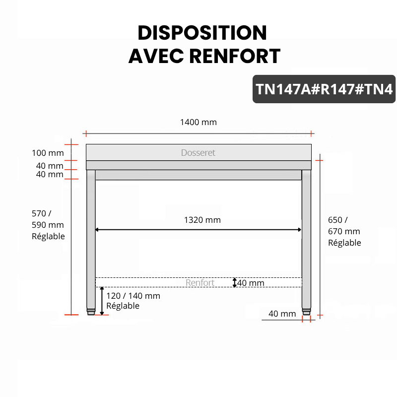- Renfort inox et étagère basse fournie