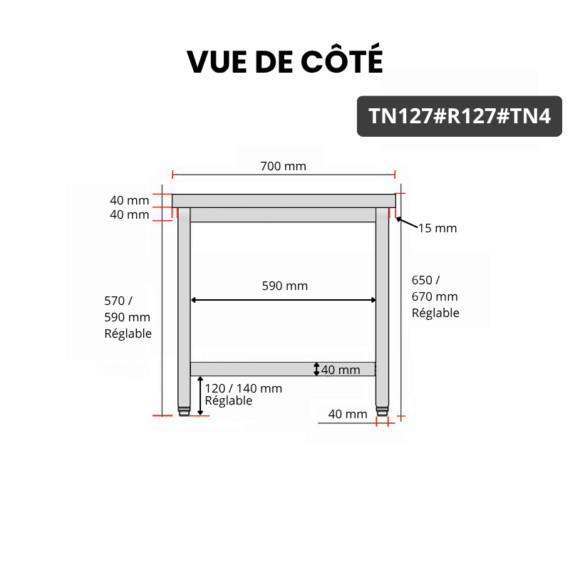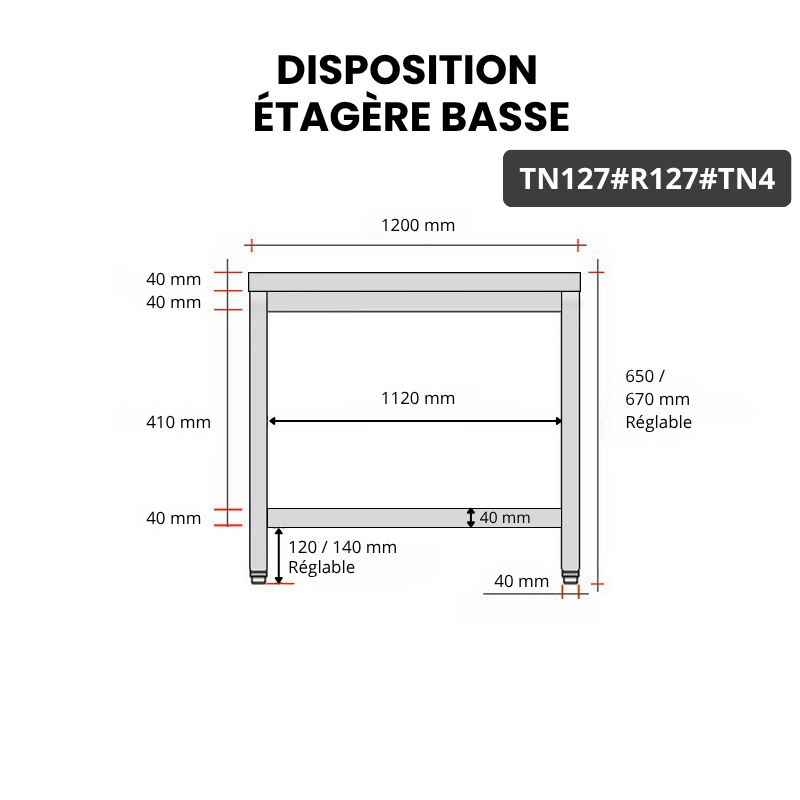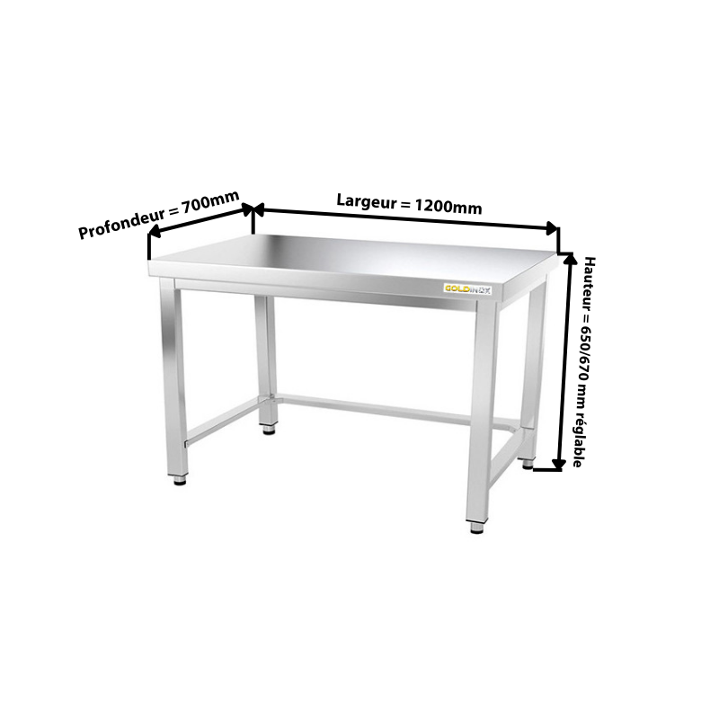 Table inox soubassement 1200 x 700 mm avec renfort / GOLDINOX