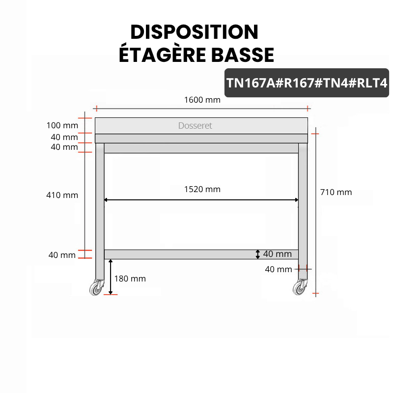 - Renfort inox et étagère basse fournie