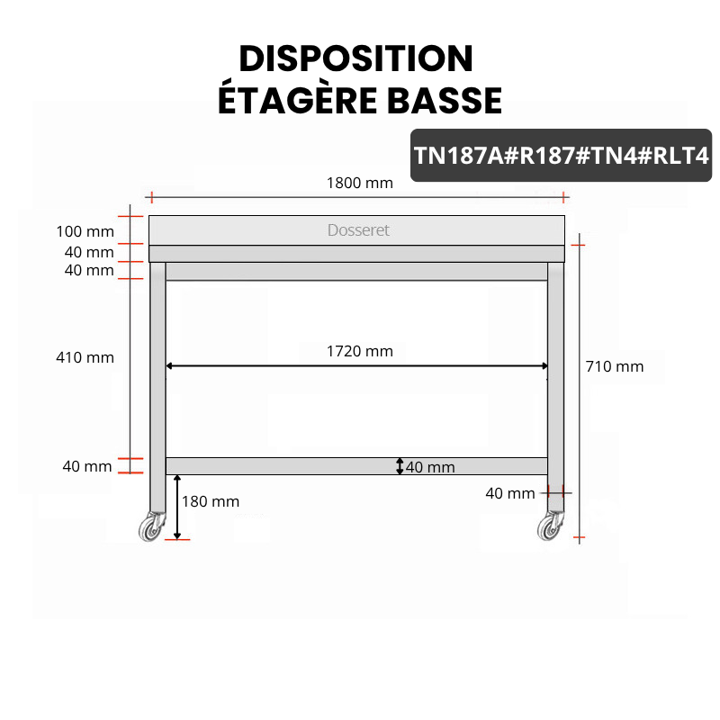 Nos tables en acier inoxydable permettent un meilleur aménagement de votre cuisine. Elles sont conçues pour une utilisation intensive et supportent des charges très élevées. Nos tables inox répondent aux normes obligatoires pour le mobilier en milieu professionnel. Le montage est très simple à réaliser et nécessite peu de temps d'exécution. Dotée de 4 roues robustes dont 2 avec freins, vous aurez alors tout le confort d'une table inox mobile, permettant un déplacement de votre matériel sans effort.