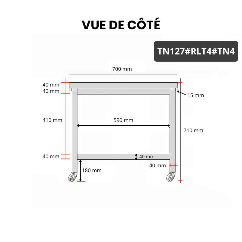 Nos tables en acier inoxydable permettent un meilleur aménagement de votre cuisine. Elles sont conçues pour une utilisation intensive et supportent des charges très élevées. Nos tables inox répondent aux normes obligatoires pour le mobilier en milieu professionnel. Le montage est très simple à réaliser et nécessite peu de temps d'exécution. Dotée de 4 roues robustes dont 2 avec freins, vous aurez alors tout le confort d'une table inox mobile, permettant un déplacement de votre matériel sans effort.
