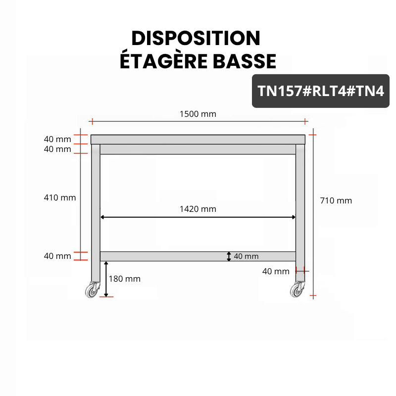 Nos tables en acier inoxydable permettent un meilleur aménagement de votre cuisine. Elles sont conçues pour une utilisation intensive et supportent des charges très élevées. Nos tables inox répondent aux normes obligatoires pour le mobilier en milieu professionnel. Le montage est très simple à réaliser et nécessite peu de temps d'exécution. Dotée de 4 roues robustes dont 2 avec freins, vous aurez alors tout le confort d'une table inox mobile, permettant un déplacement de votre matériel sans effort.
