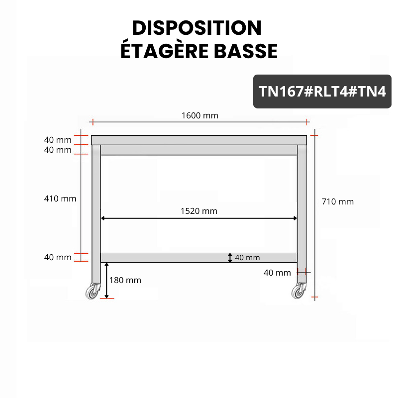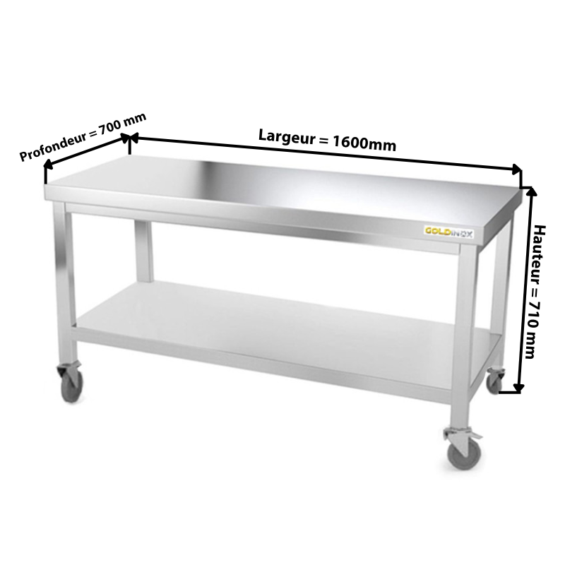 Table inox soubassement 1600 x 700 mm sur roulettes / GOLDINOX