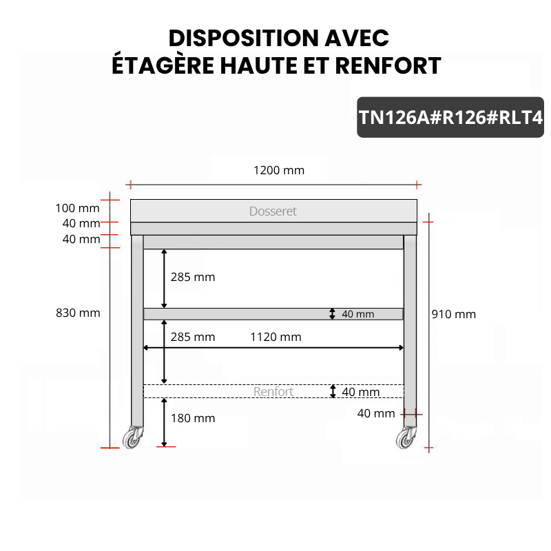Dotée de 4 roues robustes dont 2 avec freins, vous aurez alors tout le confort d'une table inox mobile, permettant un déplacement de votre matériel sans effort.