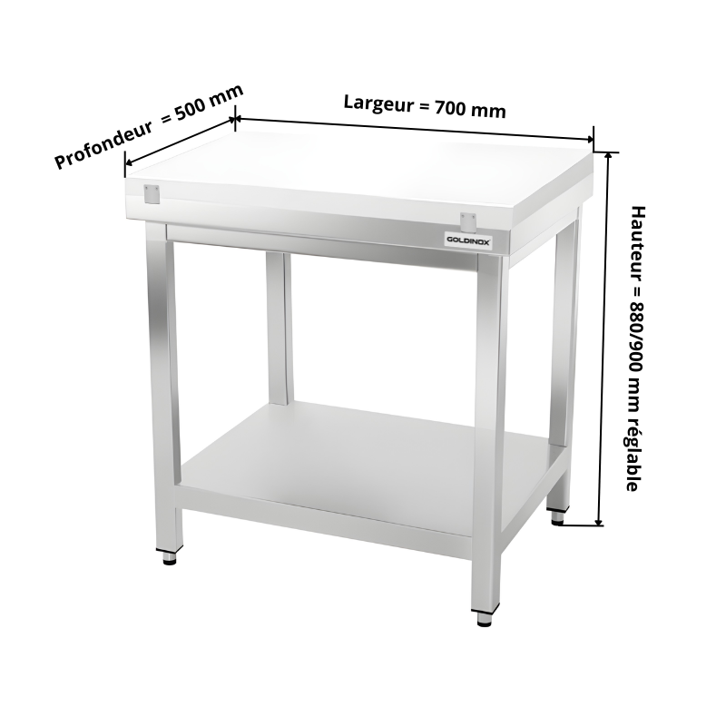 Table de travail en inox 700x500 mm avec plaque de découpe blanche PREMIUM - GOLDINOX