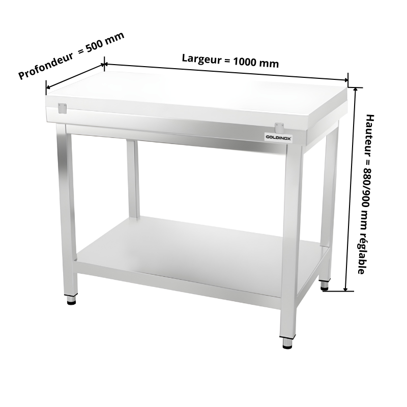 Table de travail en inox 1000x500 mm avec plaque de découpe blanche PREMIUM - GOLDINOX