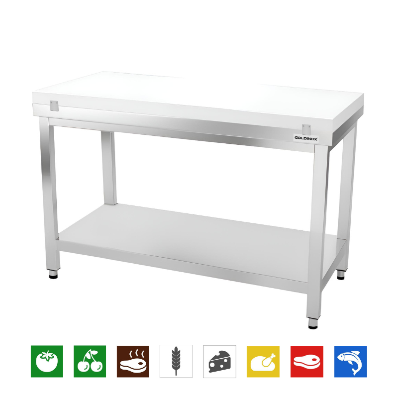 Table de travail en inox 1400x500 mm avec plaque de découpe blanche PREMIUM - GOLDINOX