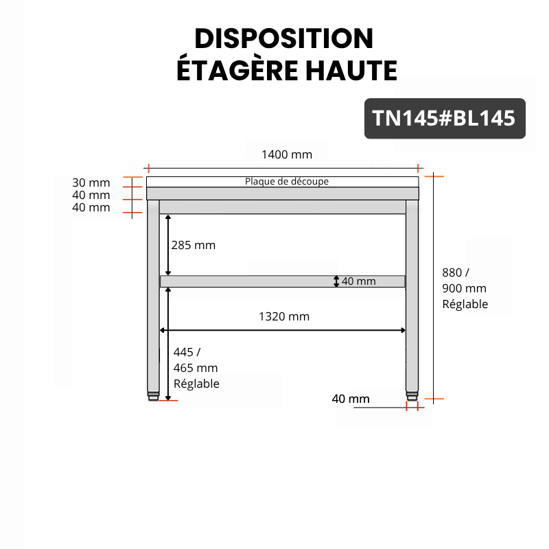 • Possibilité d'ajouter en option une étagère supplémentaire (E145) ou un kit roulettes (RLT4)