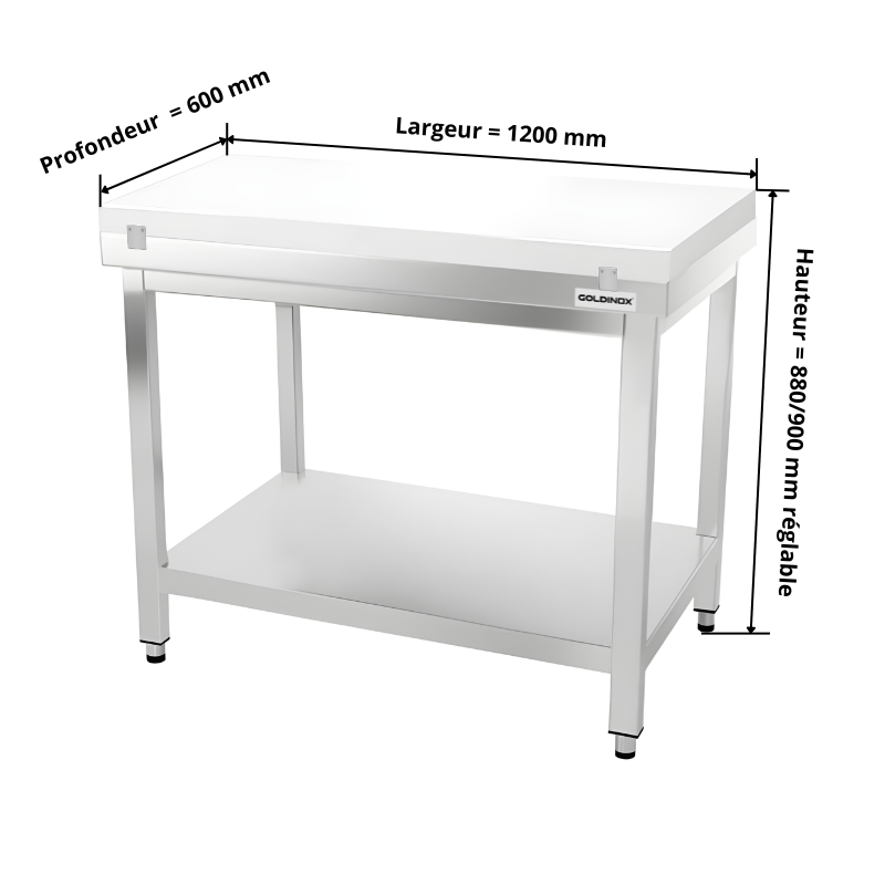 Table de travail en inox 1200x600 mm avec plaque de découpe blanche PREMIUM - GOLDINOX