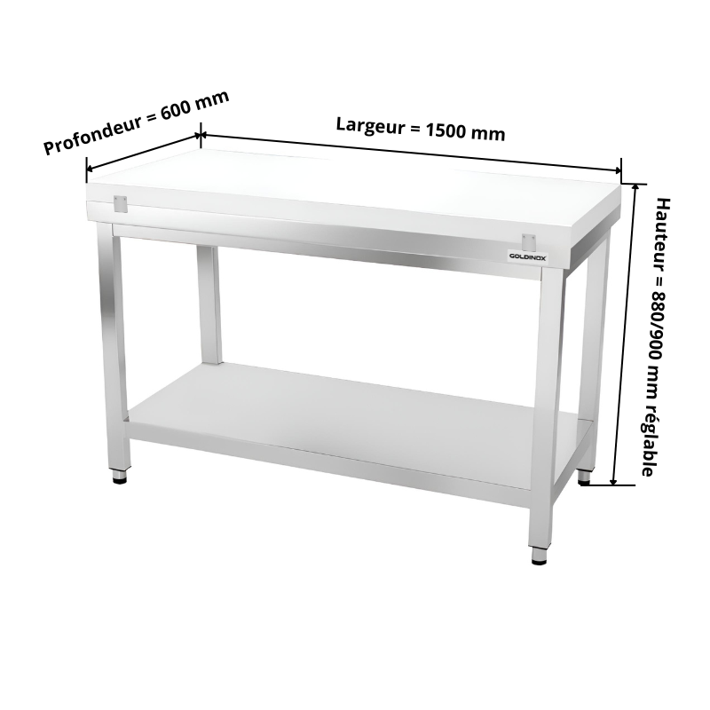 Table de travail en inox 1500x600 mm avec plaque de découpe blanche PREMIUM - GOLDINOX