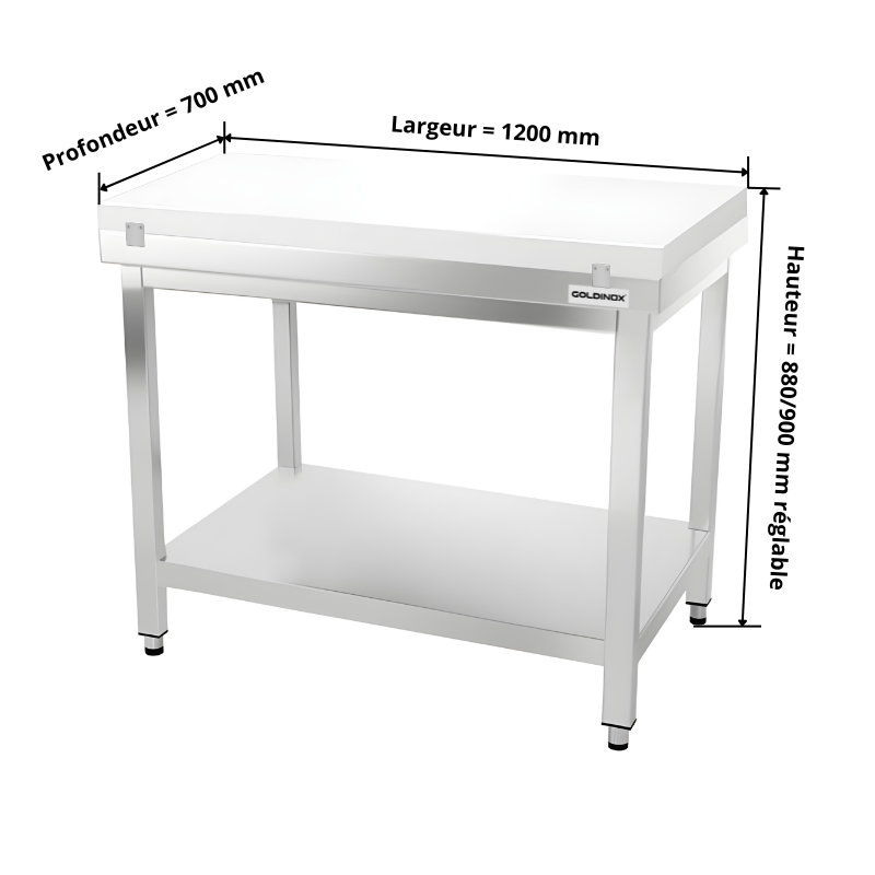 Table de travail en inox 1200x700 mm avec plaque de découpe blanche PREMIUM - GOLDINOX
