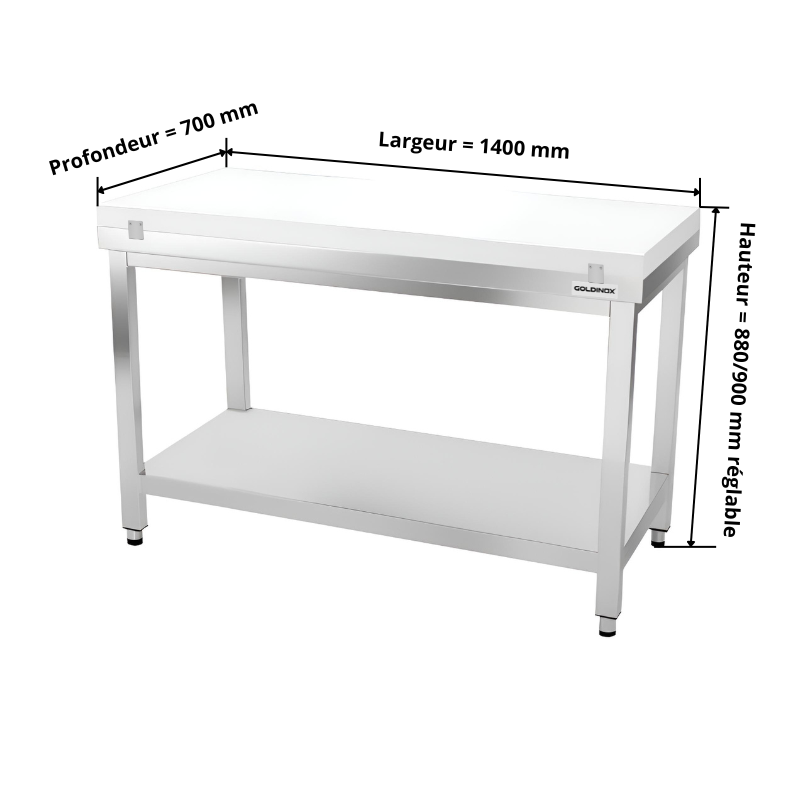 Table de travail en inox 1400x700 mm avec plaque de découpe blanche PREMIUM - GOLDINOX