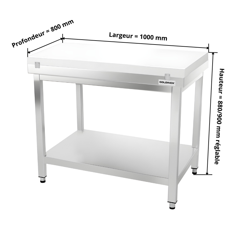 Table de travail en inox 1000x800 mm avec plaque de découpe blanche PREMIUM - GOLDINOX