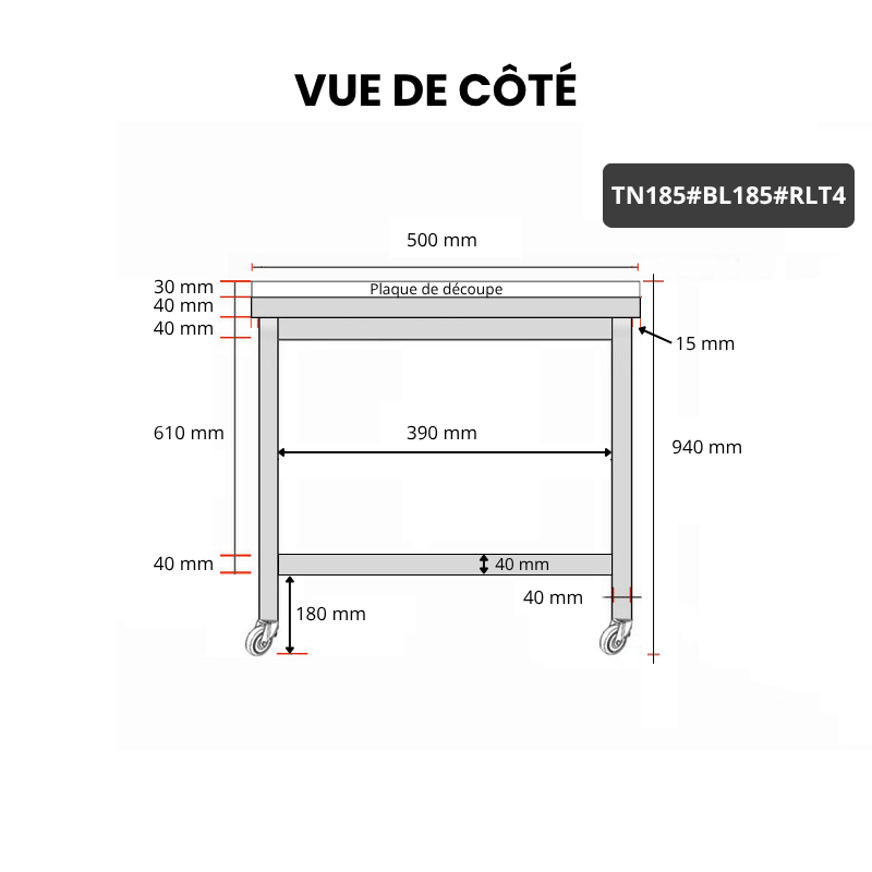 Table de travail en inox 1800x500 mm avec plaque de découpe blanche sur roulettes PREMIUM - GOLDINOX