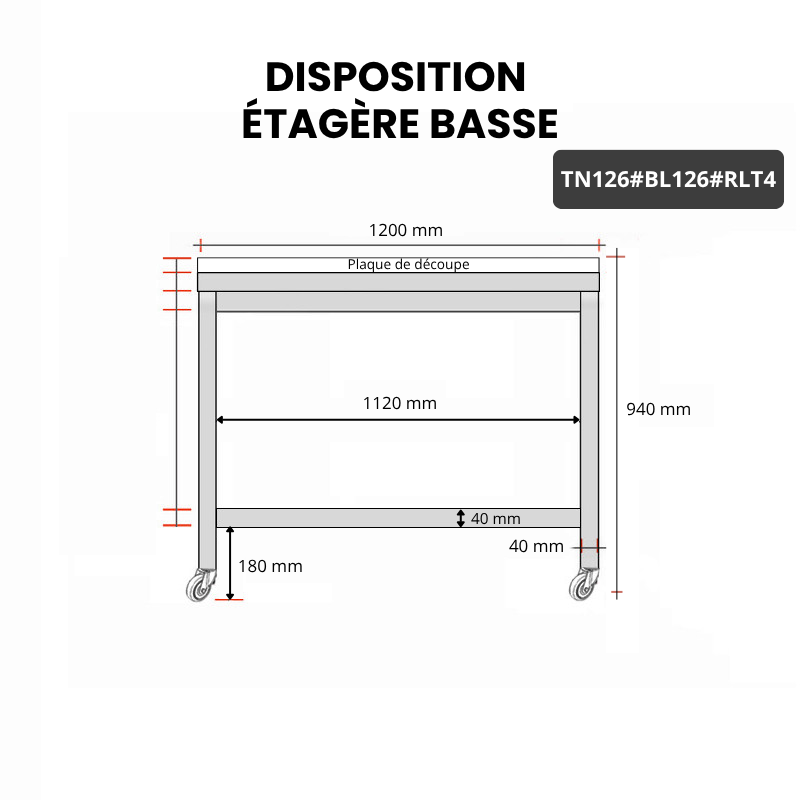 - 1 étagère basse inox fournie
